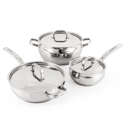 BergHOFF’s 18/10 Stainless Steel Belly Cookware Collection, elegant beauty that will last for years. Crafted from hygienic 18/10 stainless steel with a mirrored finish, this cookware shows off sleek curves that accent each piece giving this cookware a unique and attractive look. Professional quality cooking with effortless cleanup. The stainless steel lids allow you to cook more efficiently by securing heat inside. Our durable stainless steel cookware, designed with versatility and functionality in mind, is built to withstand a lifetime of use in the home. Ergonomic, double-riveted stainless steel handles provide a secure grip. High quality elements were put into every aspect of this cookware. The solid tri-ply base allows you to use on all cooktops including ceramic, gas, induction, electric, and glass. Please allow cookware to cool completely before attempting to clean. Dishwasher safe. Set includes: 6.25″ Saucepan 1.5qt., 8″ Saucepan 3.2qt., 9.5″ Stockpot 5.5qt., 9.5″ Deep Skillet, 8″ Frying pan, 9.5″ Frying pan, 10.5″ Skillet 2.5qt., 5x stainless steel lids