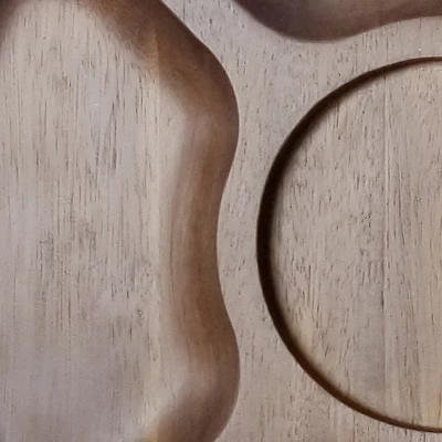 BergHOFF’s acacia wood set, known for its durability and beautiful grain patterns. The serving platter is perfect for presenting a variety of appetizers, cheeses, or desserts, while the divided tray with 3 compartments is ideal for serving nuts, olives, or other small snacks. The natural variations in the wood grain make each piece unique and add a touch of rustic charm to any table setting. The durable and sturdy construction of Acacia wood ensures that these pieces will withstand regular use and last for years to come. Additionally, the rich, warm tones of the wood create a visually appealing presentation that will impress guests and elevate the dining experience. Whether you are hosting a dinner party, a family gathering, or simply enjoying a quiet evening at home, this acacia wood set is a must-have for anyone who loves to entertain. Set includes: 13″ Serving Platter, 10″ Divided Tray