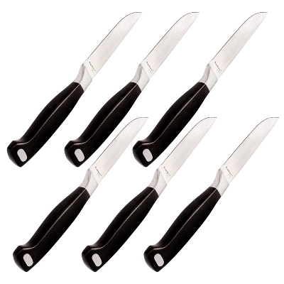 This steak knife set is made of durable high-quality stainless steel is absolutely indestructible and corrosion resistant. The highly polished surface is hard wearing, thick, easy to clean and hygienic. Advanced manufacturing methods plus traditional craftsmanship guarantee flawless product quality. This is where indestructible craftsmanship meets luxurious design. The Bistro 6″ Steak Knife set is truly something else. With handles that feel amazing in your hands, a precision honed blade, a highly polished surface, and an extremely durable stainless steel construction, this knife set will be valued by your family for generation after generation.