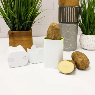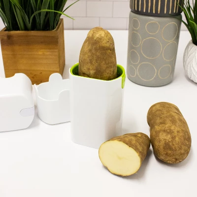 - Simply press down on the top to slice your fries.