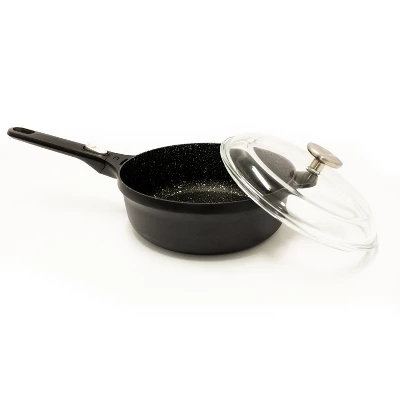 - Made of Non-stick Ferno-Green,PFOA Free coating Cast Aluminum. Glass lid with 18/10 Stainless Steel knob. Easily detachable handle that allows for use in the oven and space-efficient storage.