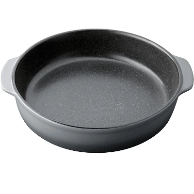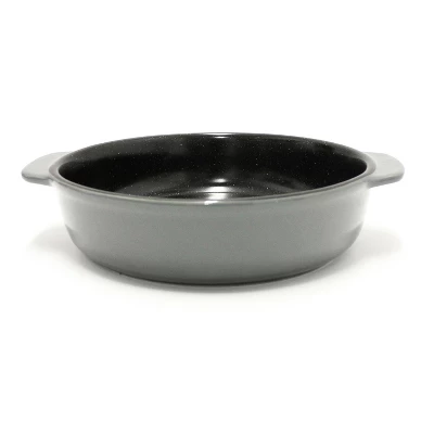 Bake, serve, store and reheat meals, you can do it all with this round baking dish! Whether you’re in the mood for a chicken pot pie or some freshly baked cinnamon rolls, just get out this stoneware beauty and slide it in the oven with the help of the convenient handles. The durable material with enamel coating makes sure your meal or snack bakes evenly, keeps it warm at the table and is a breeze to clean once you’ve finished those last bites. This dish is microwave, oven and dishwasher safe.