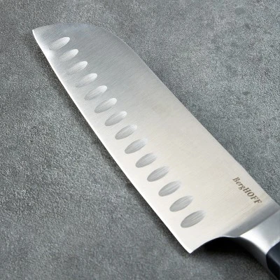 - The Chef’s and Santoku knives features wide blades for various cutting tasks. Slice through tough-skinned fruits and vegetables with the utility knife’s straight cutting edge or utilize the small paring knife for exceptional precision and maneuverability when peeling fruits, vegetables or trimming fat.