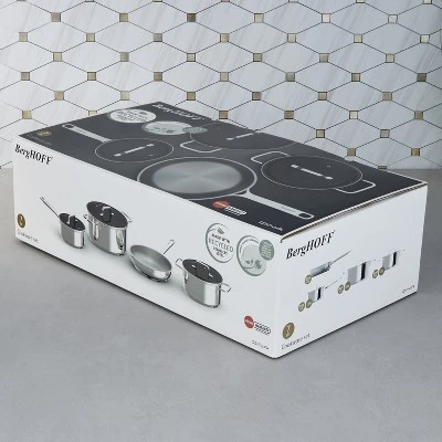 - Set includes recycled 18/10 stainless steel 6.5″ Saucepan 1.6qt., 8″ Stockpot 3.2qt., 10″ Stockpot 5.7qt., 9.5″ Fry Pan, and 3x glass lids and equipped with ergonomic, comfort-grip handles.