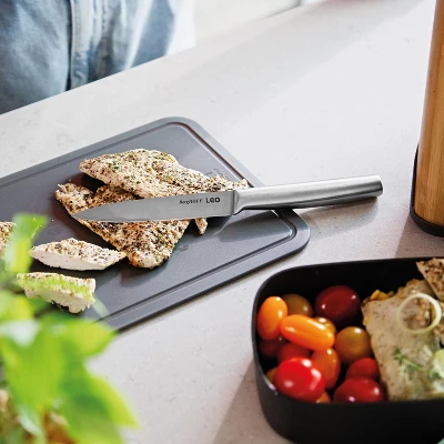 - VERSATILE AND MULTIFUNCTIONAL: This convenient utility knife is a true jack of all trades, between a paring knife and a chef’s knife, making it perfect for everyday cutting tasks. From peeling mid-sized fruits and vegetables to cutting citrus fruits and slicing sandwiches, the high-quality stainless-steel blade handles them all in a moment. Its compact size and sharpness, the utility knife serves as a reliable multi-purpose tool, suitable for a variety of cutting tasks in the kitchen.
