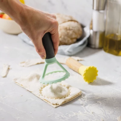 Set Includes: Regular size Ravioli Stamp, Mini Ravioli Stamp. These soft touch handles allow to make beautiful and authentic homemade raviolis with the Leo ravioli stamp and the mini stamp. In just one step, these handy stamps seal perfectly shaped raviolis.