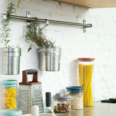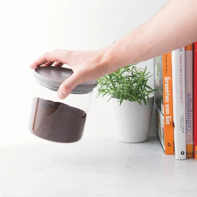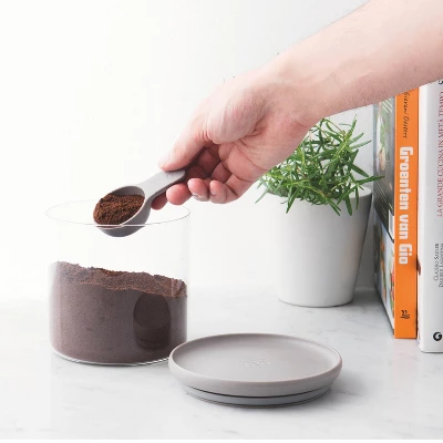 Ground coffee, vanilla sugar, fresh herbs keep it all fresh and tasty with a little help from these stackable glass food containers. Thanks to their large opening you can easily fill the canisters and take out just the right amount with the help of the matching measuring spoon. These airtight containers are stackable for easy storage, scratch resistant, and dishwasher safe!
