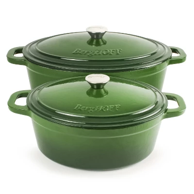 BergHOFF’s Neo Enameled Cast Iron is built to last for years to come. Crafted from durable cast iron with an enameled body this cookware heats up evenly and stays hot longer. The ergonomic handles provide a secure grip. Our 4pc set includes one 5qt covered dutch oven, and one 8qt covered dutch oven. Cook like a pro with the versatile dutch oven that can go effortlessly from browning on the stove top to roasting in the oven. Braise short ribs, make hearty stew, three bean chili, curry chicken, and so much more. Our Neo cast iron cookware is suitable for all cooktops including gas, electric, ceramic, glass, and induction. Neo cast iron cookware is also oven ready. You can sear your food on the stovetop, and finish in the oven. Please allow cookware to cool completely before attempting to clean. Handwash recommended with warm water and mild detergent; dry thoroughly. Avoid cleansers that contain bleach or citrus extracts.