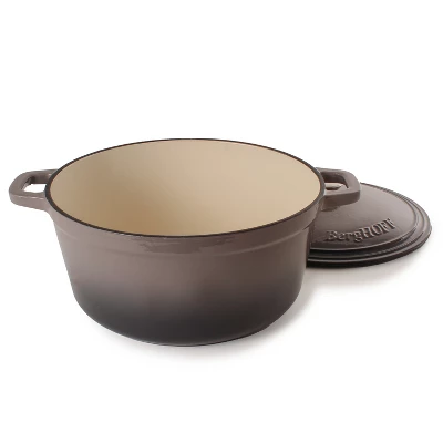- 11″ Round Dutch Oven 7qt with Lid is made with high-quality cast iron, featuring an enamel coating both inside and outside, glossy base and wide, ergonomic handles for easy handling. The enameled surface ensures minimal sticking and staining, eliminating the need for preseasoning and promotes a fast and easy cleanup process.