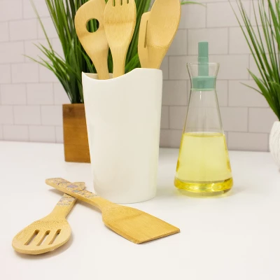 - Package includes Bamboo 12″ Slotted Spatula, 12″ Spatula, 12″ Slotted Spoon, 12″ Serving Spoon, 12″ Spaghetti Spoon, 12″ Salad Spoon.