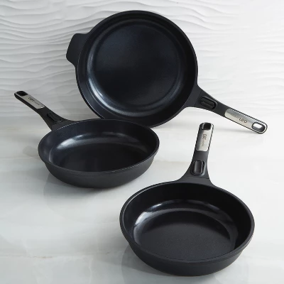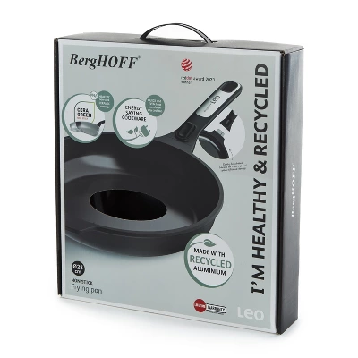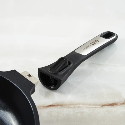 Leo Phantom Frying pan combines sustainable design with high performance, featuring a non-toxic, PTFE-free, and PFAS-free CeraGreen ceramic coating on recycled cast aluminum. Its stay-cool handle ensures safety and comfort, while the lightweight body and non-stick surface allow for cooking with minimal oil and effortless cleanup. The pan’s full disk bottom provides even heat distribution for energy-efficient cooking, suitable for any cooktop such as induction, electric, gas, glass top, and vitro-ceramic. The detachable handle offers convenience for oven use up to 400°F without handle and easy storage. Perfect for frying, searing, and browning, this pan is a versatile addition to any kitchen. Explore the Leo collection for more high-quality cookware options in various materials and sizes. Available in 4 sizes: 8″, 9.5″, 11″, 12.75″