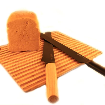 Want to cut through a crusty loaf of bread evenly and cleanly or slice your tomatoes to perfection? This serrated bread knife is just what you need! It saws right through the crust or skin, leaving the softer inside intact. The straight steel knife with a titanium and non-stick coating is well-balanced and very easy to use.