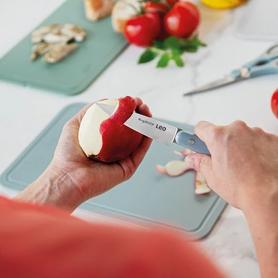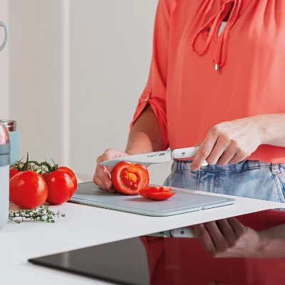 Peeling a hot potato, cutting thin julienne strips or deveining shrimps, whatever cooking task is waiting for you, this paring knife is ready to lend a hand. Thanks to its smaller and slightly curved blade, it’s a great tool for those precision tasks. The handle gives you total control of the blade and offers maximum safety while cutting your ingredients. Choose between two matching colors and brighten up your kitchen with these glossy finishing knives.