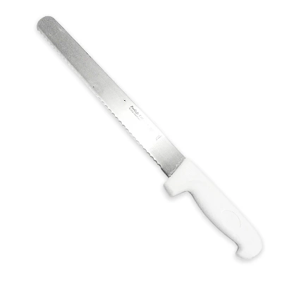 Scalloped Slicer is made from high quality, ice hardened stainless steel, these knives feature ergonomically designed black, soft grip, thermo plastic handles. Easily sharpened and holds their edge well. The handle is safe, high impact, slip resistant as well as antimicrobial and micro-organism safe. The knife is and low temperature resistant and safe to use in the freezer.