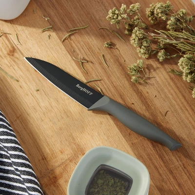 - Stainless steel 4″ paring knife with nonstick ceramic coating and ergonomic PP handle. Includes PP protective sleeve.
