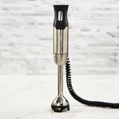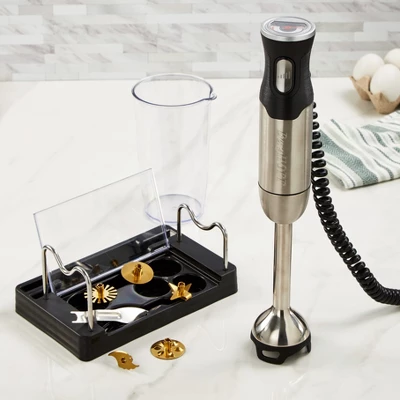 Introducing our game-changing handheld blender with 5 interchangeable blades – the epitome of power, versatility, and convenience. With a powerful 1000W DC motor and reaching 18,000 RPM, it conquers any blending task with ease. Cleaning is a breeze with detachable blades and a stainless-steel body. Plus, its curly cord can expand up to 13ft, granting unmatched flexibility in the kitchen. Prepare to elevate your culinary creations to new heights with this ultimate handheld food processor.