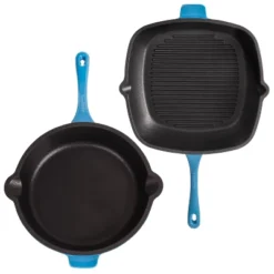 BergHOFF Neo Cast Iron 4Pc Set, Fry Pan 10″, Square Grill Pan 11″, & 5qt. Covered Dutch Oven